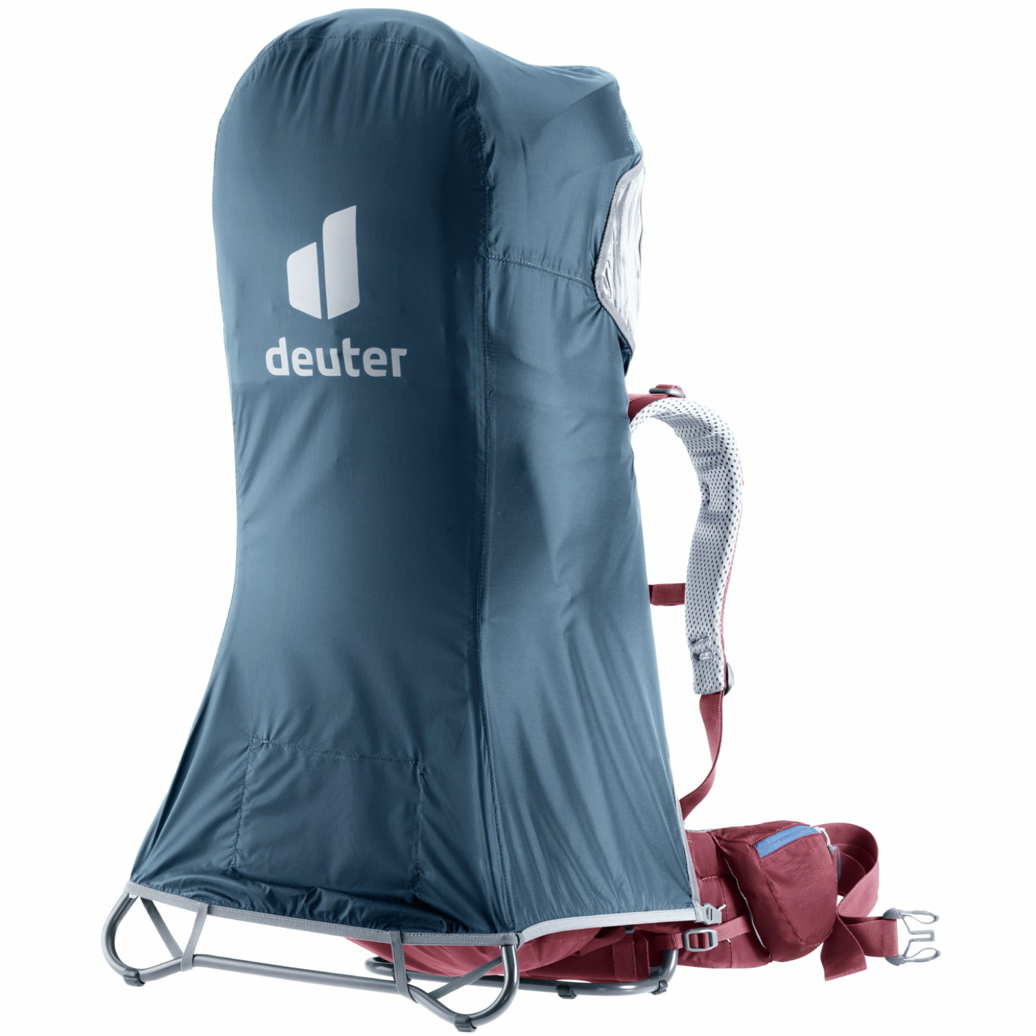 Regenhülle für Deuter Kindertragen, die ein Sonnendach besitzen.