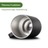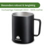 Dank der Thermo Funktion durch den doppelwandigen Edelstahls hält die Tasse dein Getränk länger warm und schützt gleichzeitig vor Verbrennungen.