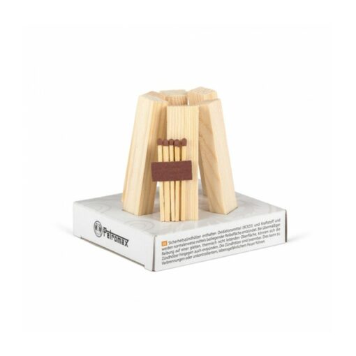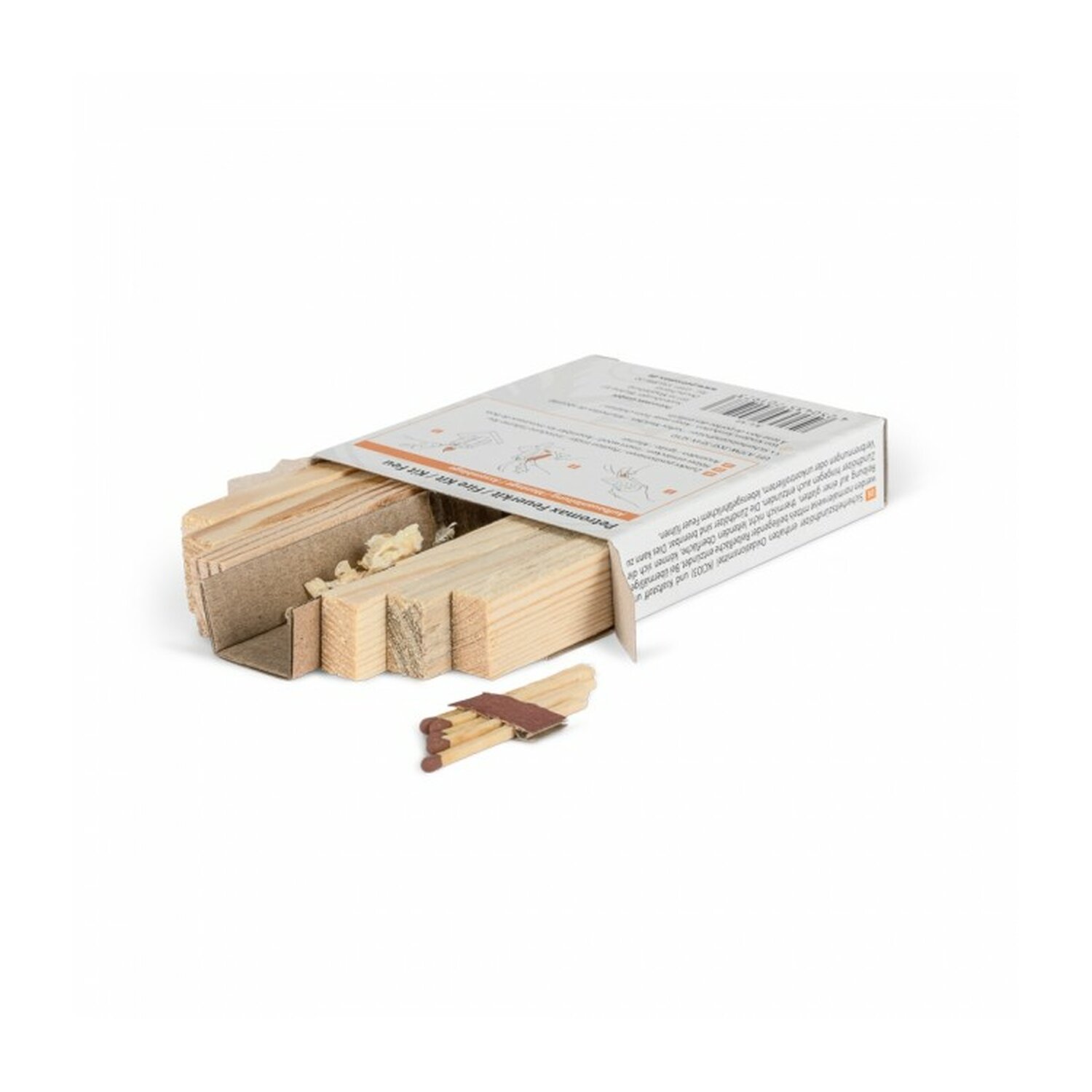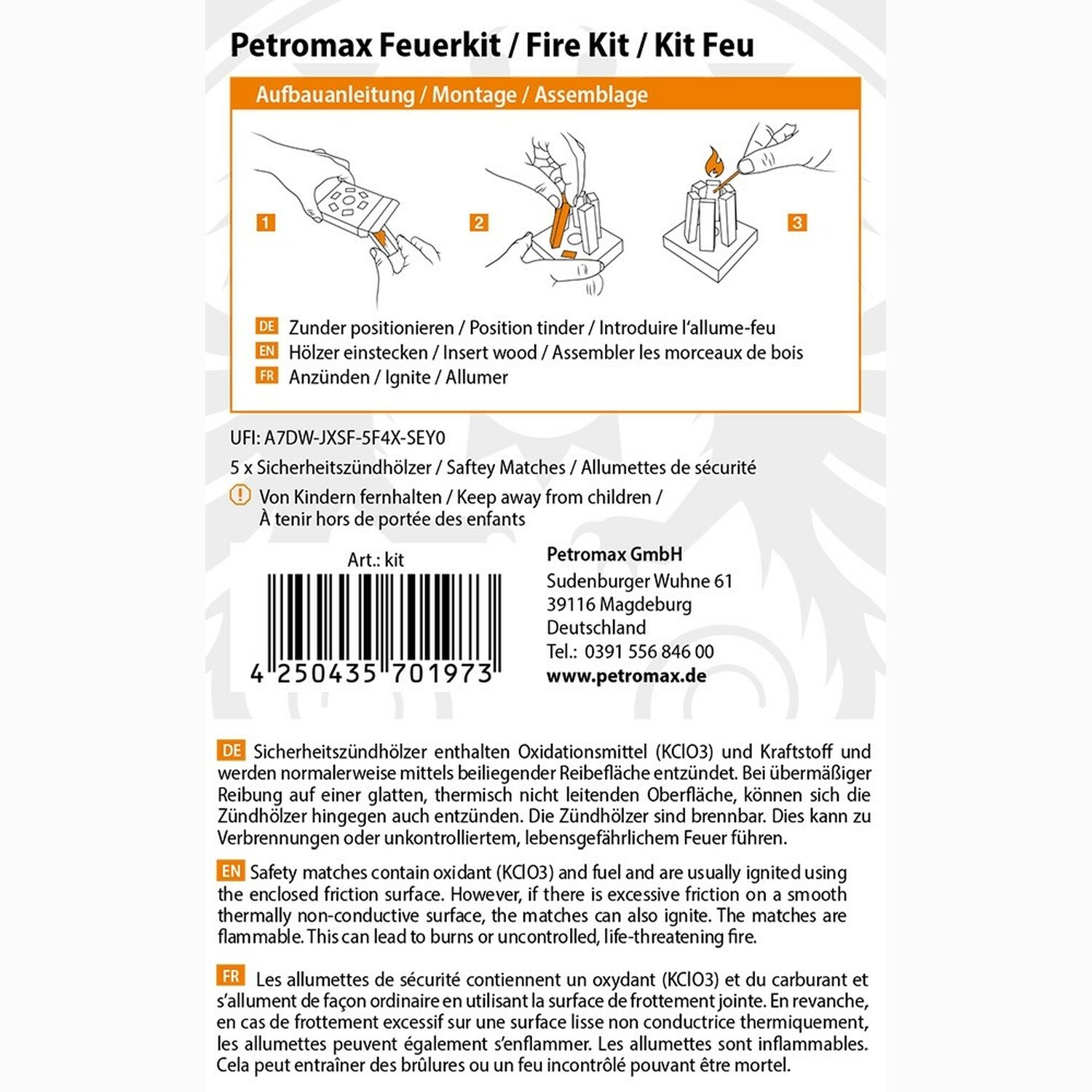 Das Petromax Feuerkit ist handlich verpackt und schnell aufgebaut: Die sechs Hölzchen einfach mit der Steckpappe verbinden, sodass ein Kegel entsteht. Anschließend mittig im aufgestapelten Feuerholz oder inmitten der Grillbriketts platzieren und mit beiliegenden Streichhölzern anzünden. Perfekt für das Lagerfeuer unterwegs, zuhause im Kamin oder Grill. Das Feuerkit ist leicht zu handhaben, unkompliziert und umweltfreundlich.