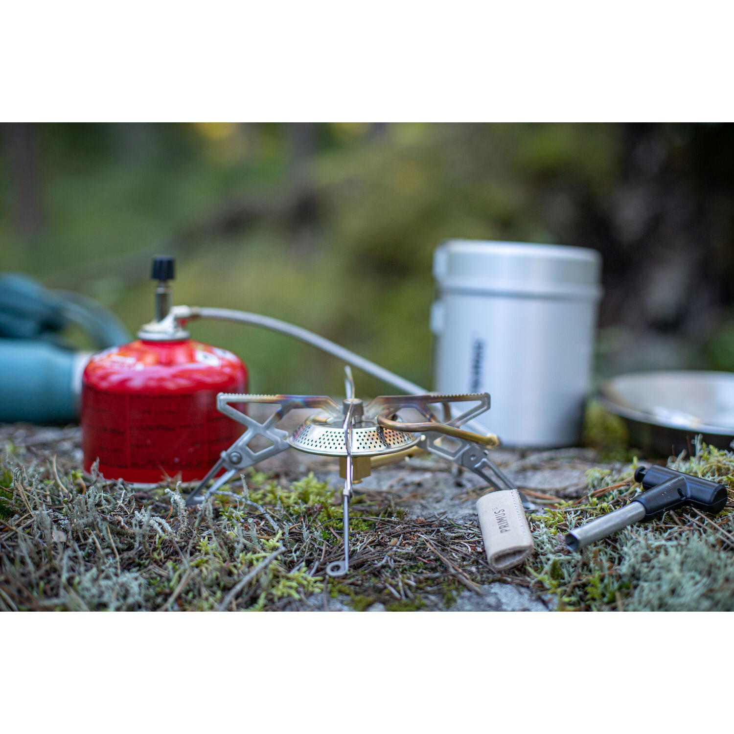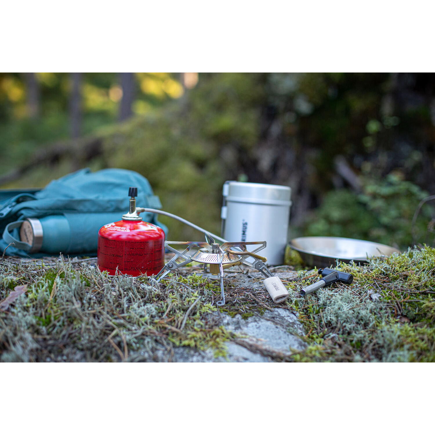 + Kartuschenkocher mit Fernzündung, besitzt maximale Stabilität dank niedrigem Schwerpunkt und vier Füßen