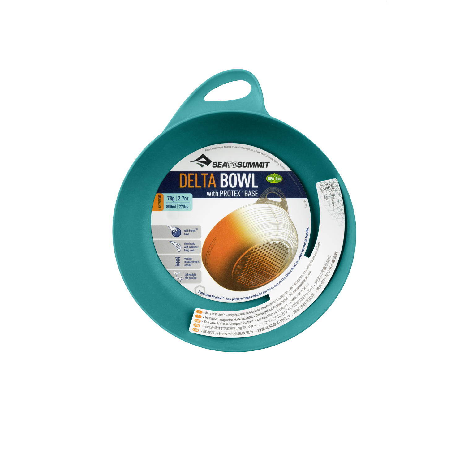Die ultraleichte Delta Bowl hat den einzigartigen Sea to Summit Hexagonboden, welcher das Gewicht dieser Schüssel gering hält und gleichzeitig Hitze reduziert. Mit dem seitlichen Daumengriff kann man sie gut festhalten und in der Öffnung einen Karabiner einhängen, um die Schüssel am Gepäck zu befestigen. Steile Seitenwänden verhindern, dass Nahrung und Flüssigkeiten über den Rand rutschen. Die 20°-Krümmung der Schale passt perfekt zum Delta-Löffel- und Spork-Profil, um jeden Bissen vom Boden der Schüssel zu kratzen.