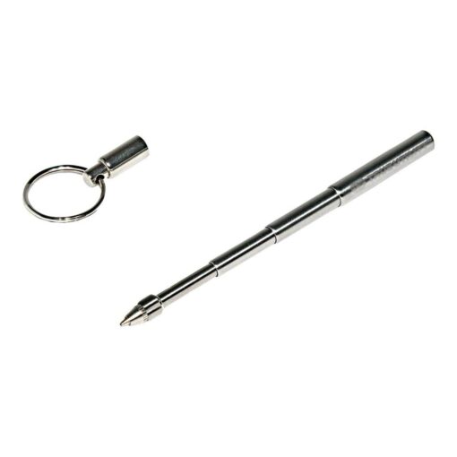 Der TELEPEN von TRUE! Dieser patentierte Stift aus rostfreiem 420 Edelstahl misst nur 50 mm und lässt sich teleskopisch auf 115 mm ausziehen. Nur einmal dran ziehen und er fährt auf volle Länge aus und ist einsatzbereit. 3 schwarze Ersatzminen und ein Schlüsselring sind im Lieferumfang bereits enthalten.